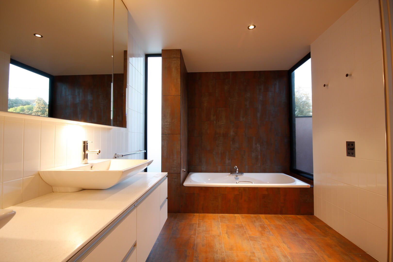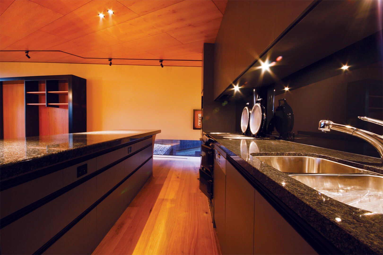 Modern build with sleek lines and innovative use of lighting and materials to exude a ambience of quality and thoughtfulness. This home in Barwon Heads is an example of the mix of materials and textures and the effect they can have. Timber ceilings, stone flooring and benches, all come together for a quality finish.