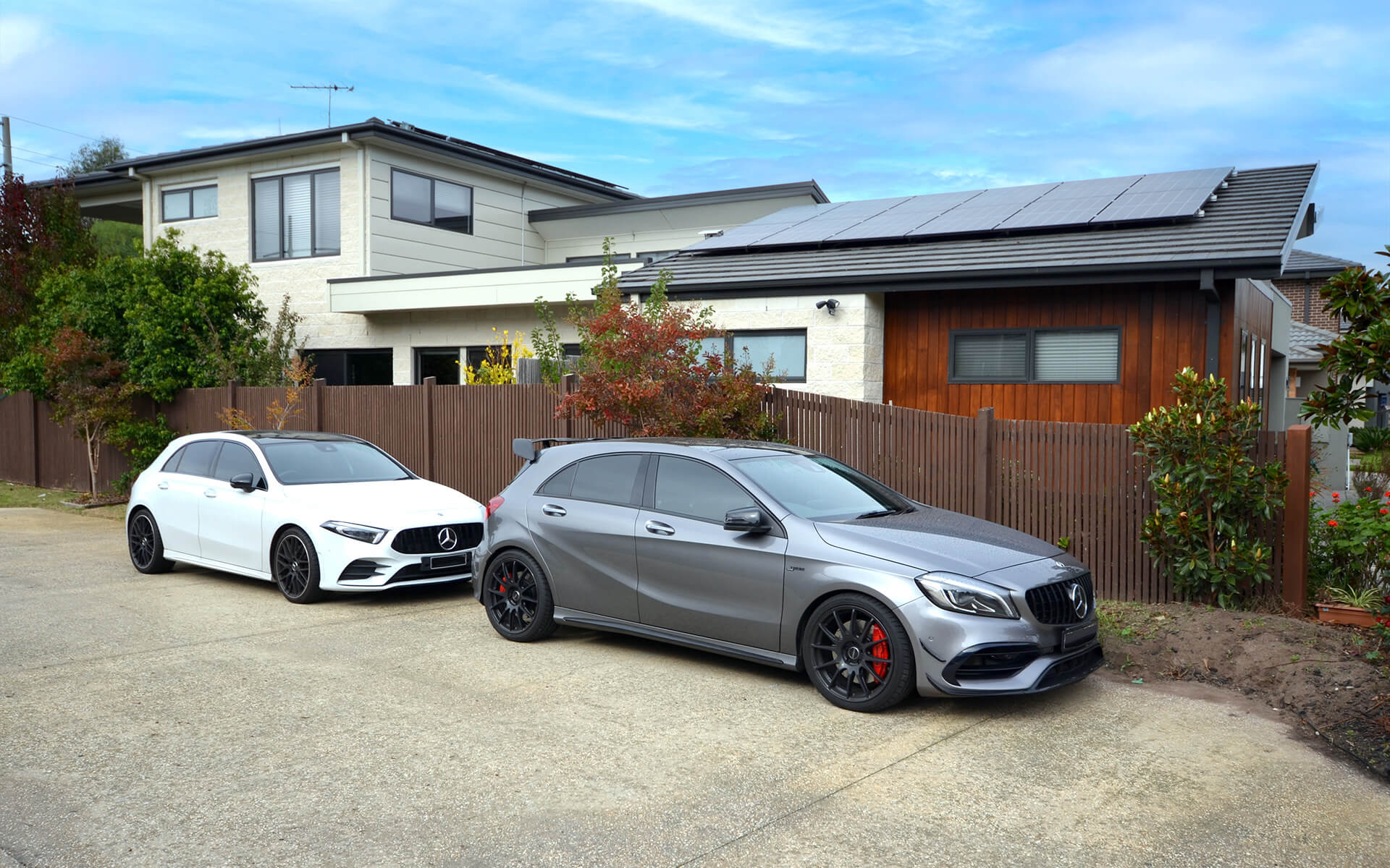 The home has the perfect mix of external materials from stone to timber cladding and painted finishes.