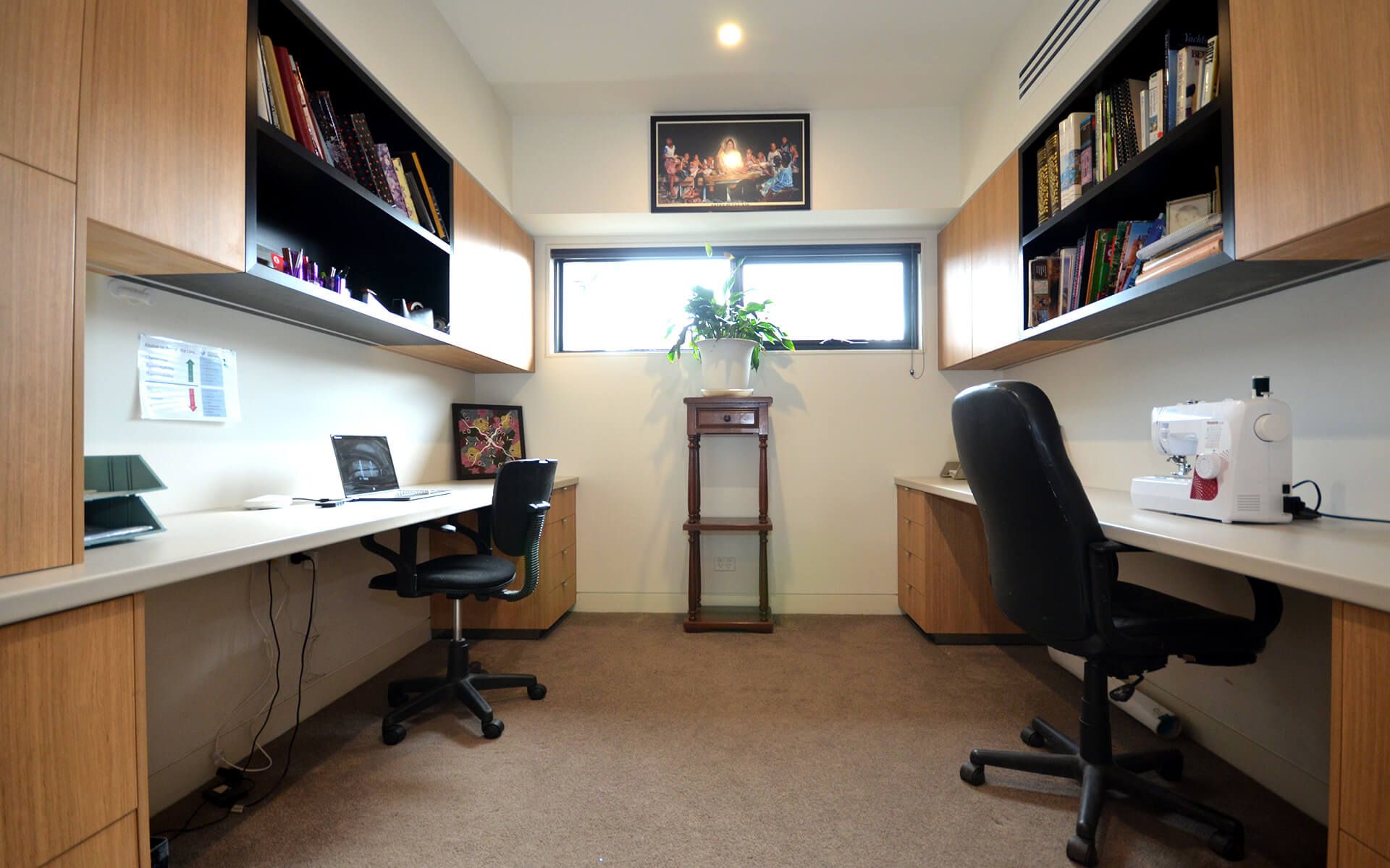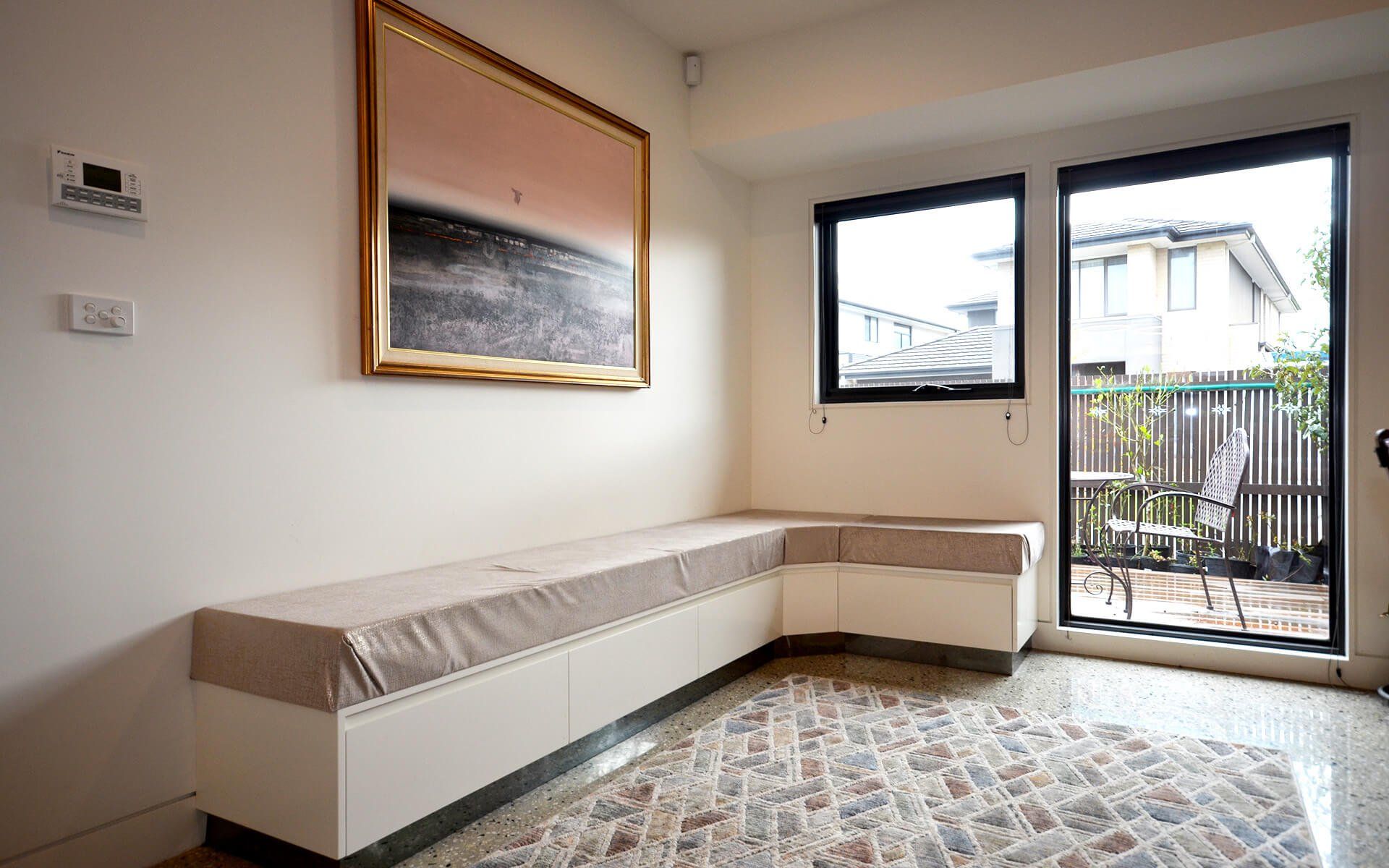 The kitchen has a butler’s pantry and large high-mounted windows to capture that morning sun. Clever use of outdoor decking and garden beds has made for a very low maintenance home.