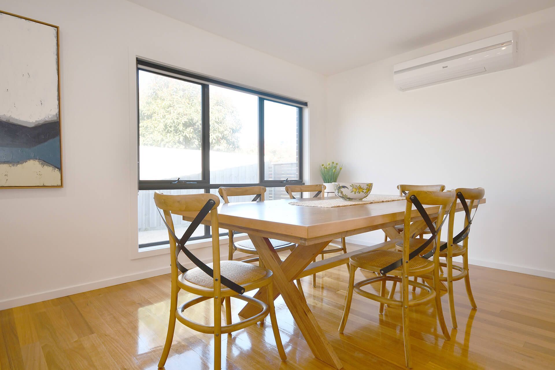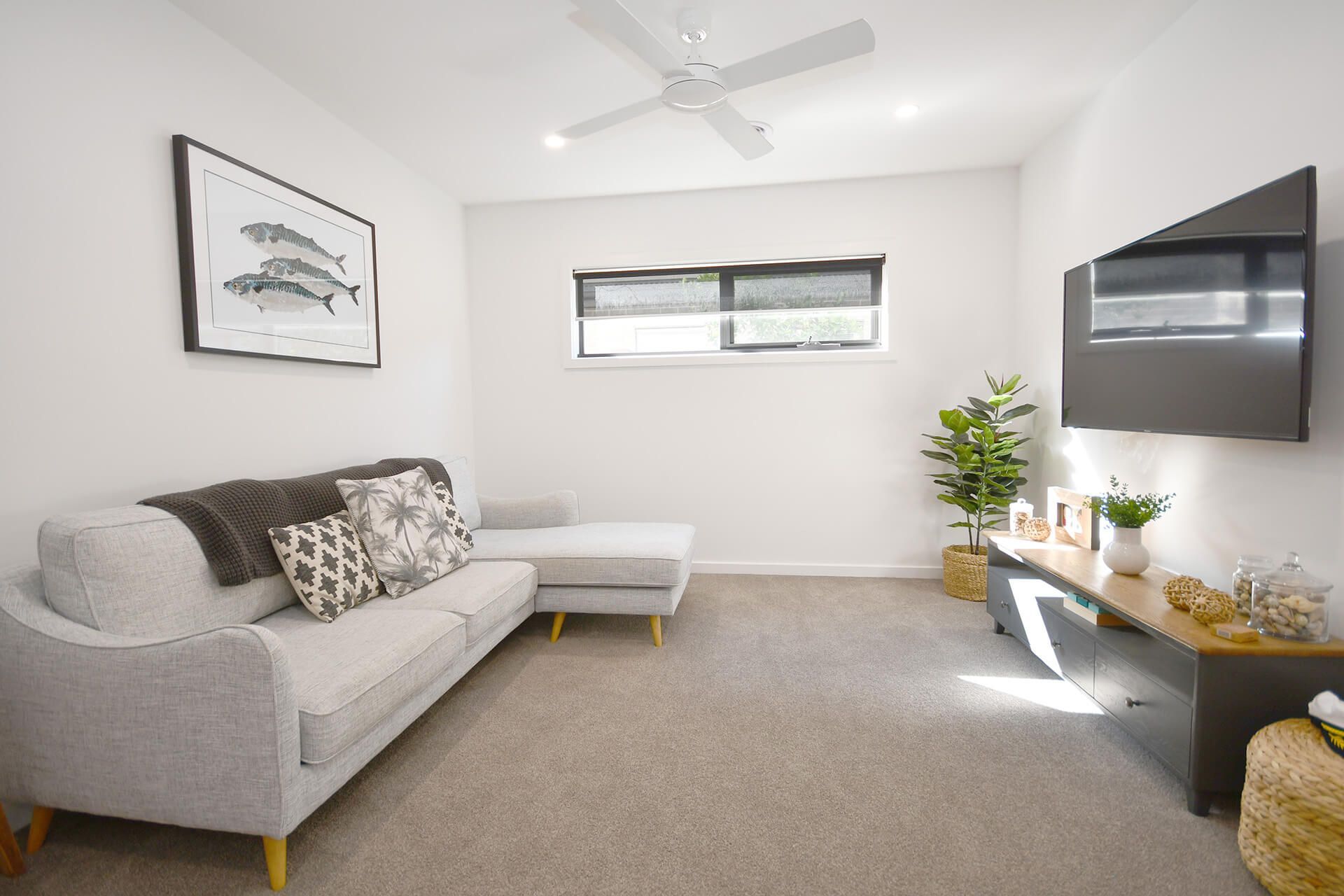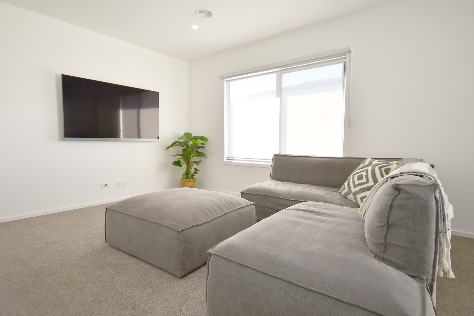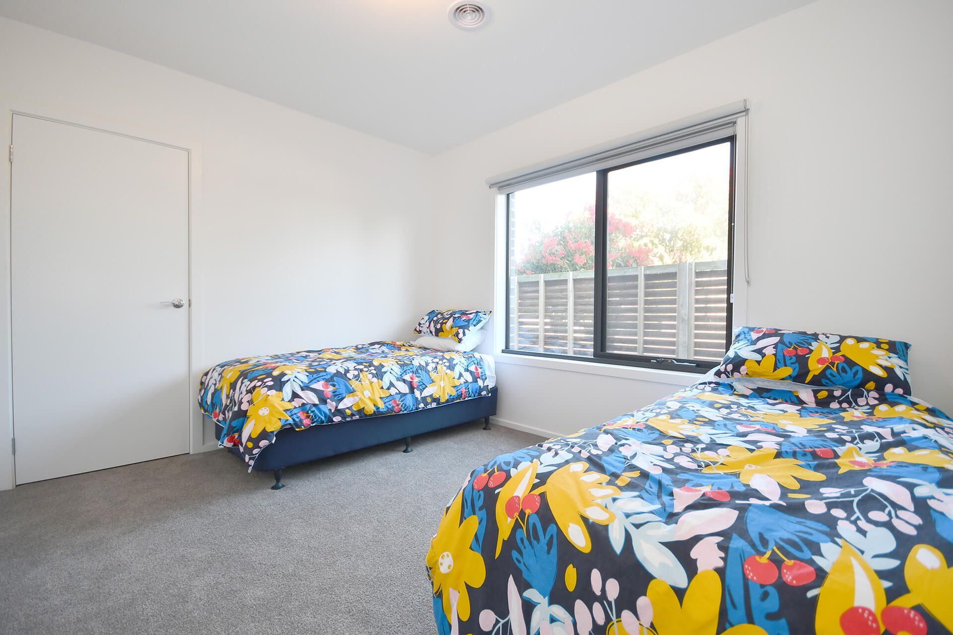 This four bedroom, three bathroom luxurious home is set near the beach at St Leonards, VIC. Hardwood flooring is a feature, as is the stone bench-top in the kitchen. A butlers pantry comes off the kitchen as does the open plan living and dining area. This area leads to a covered outdoor bbq space with a hardwood panelling roof. The double remote garage leads onto the main entry and the polished timber staircase to the second level. An open plan upstairs TV area leads to an outdoor balcony with ceiling fan for those war summer nights.