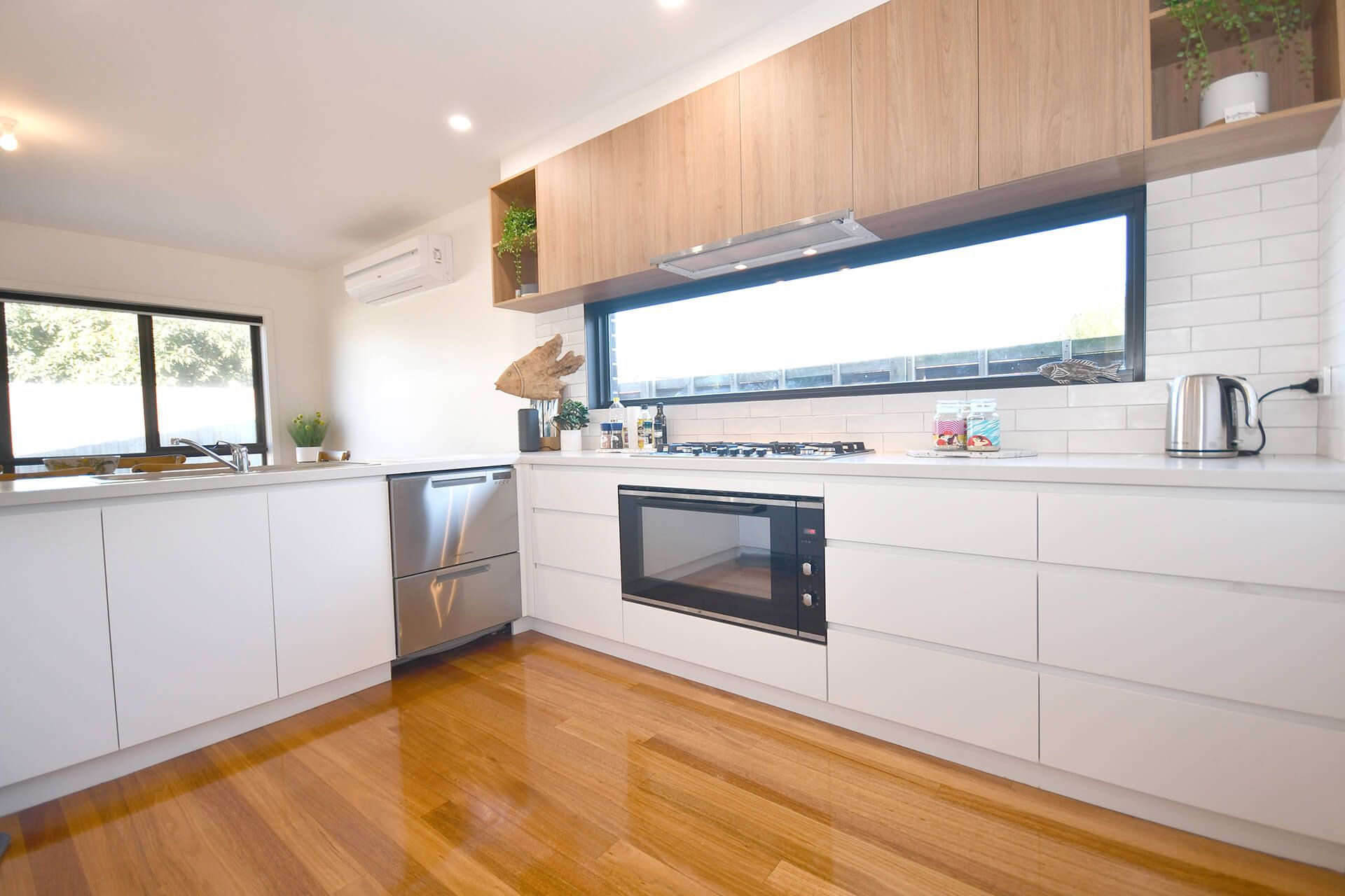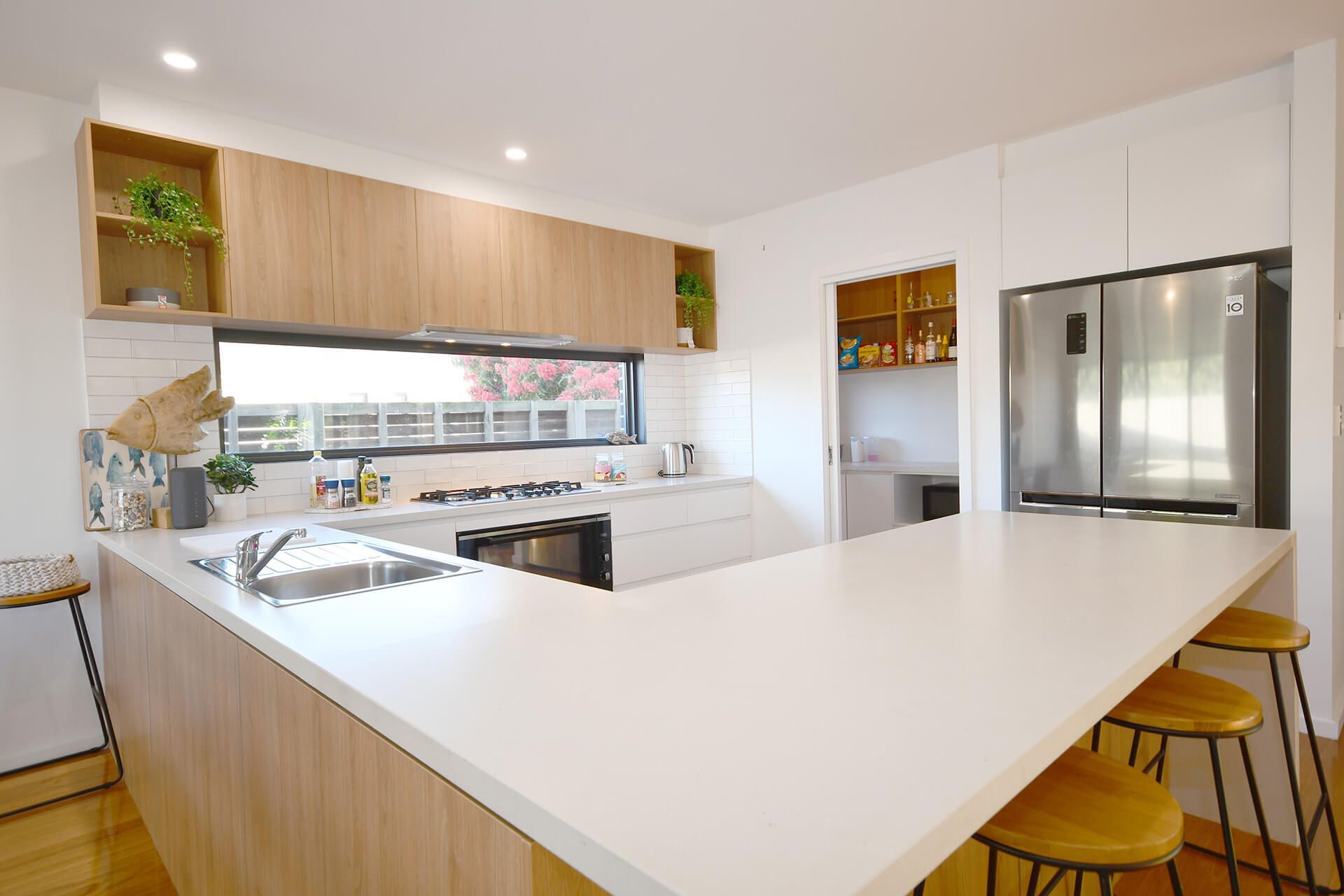 Modern build with sleek lines and innovative use of lighting and materials to exude a ambience of quality and thoughtfulness. This home in Barwon Heads is an example of the mix of materials and textures and the effect they can have. Timber ceilings, stone flooring and benches, all come together for a quality finish. Commercial, Industrial and Residential builds and renovations in Geelong and District are our specialty. Contact us today for a chat about your nest project.